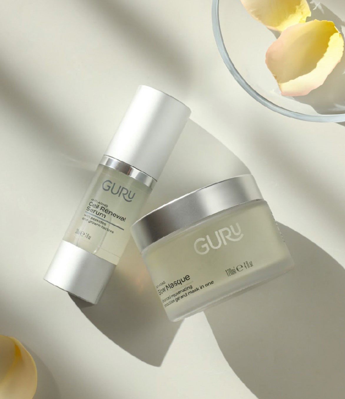 Guru Cell Renewal is a powerful anti-aging serum. Formulated with peptides and growth factors to stimulate the production of collagen and to generate healthy skin cells. Softening wrinkles, minimizing dark spots and addressing other signs of aging.